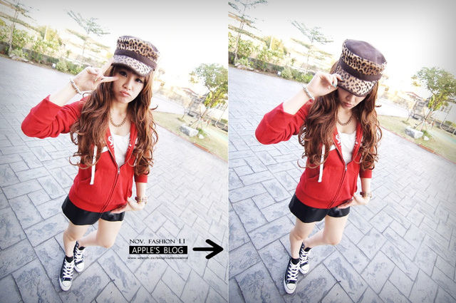 這天我只有搭配皮短褲和球鞋還有棒球帽而已