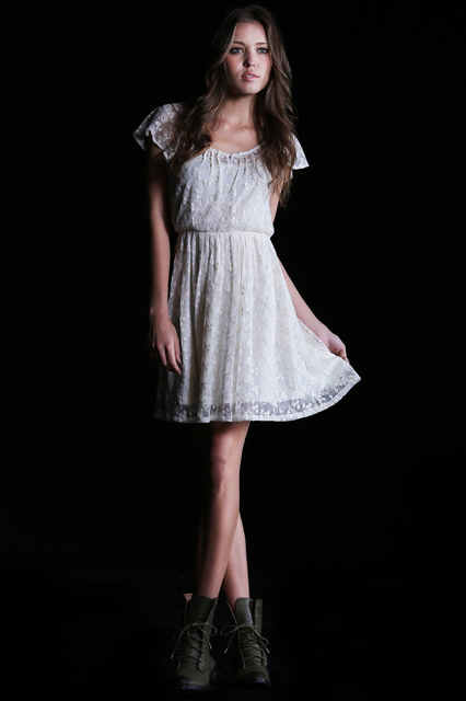柔美蕾絲緹花洋裝 - (牙白 M)