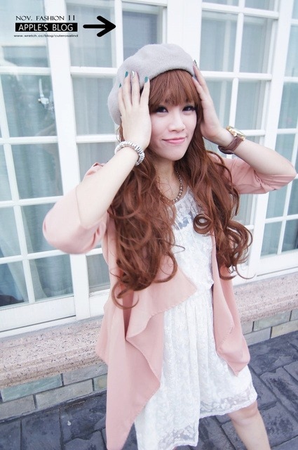 我這天穿的白色蕾絲洋裝就是特地選回來搭配外套的