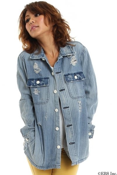 淺色系牛仔襯衫和米白小洋裝超搭的呢