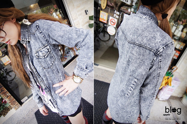 Boystyle 水洗感抓破牛仔襯衫 NT:390 + 字母T