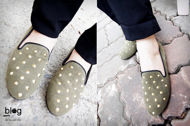 + 正韓 made in korea 鉚釘平底手工鞋 NT:980