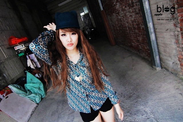 正韓 made in korea 普普風絲質幾何上衣 NT:800