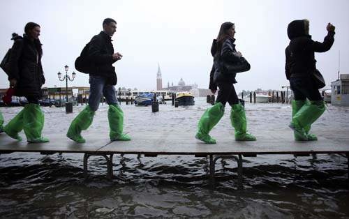 遊客甚至都還會在腳上套一種類似輕便雨衣的東西
