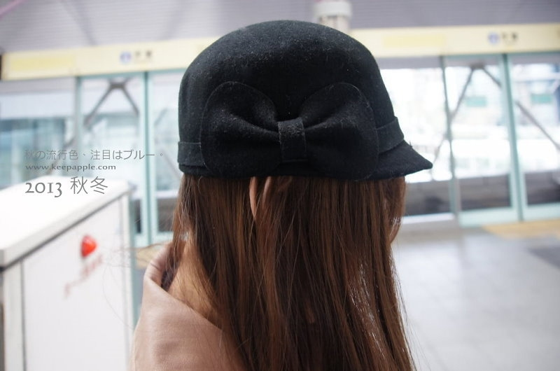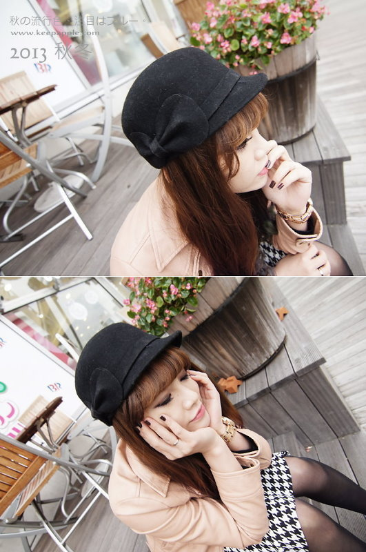 大蝴蝶結裝飾黑色毛呢貝蕾帽
