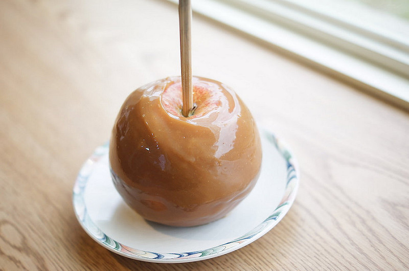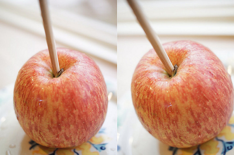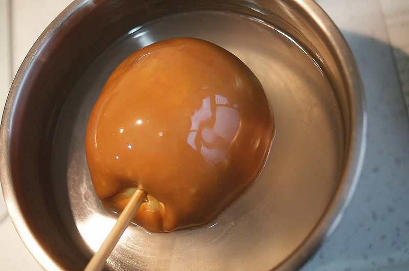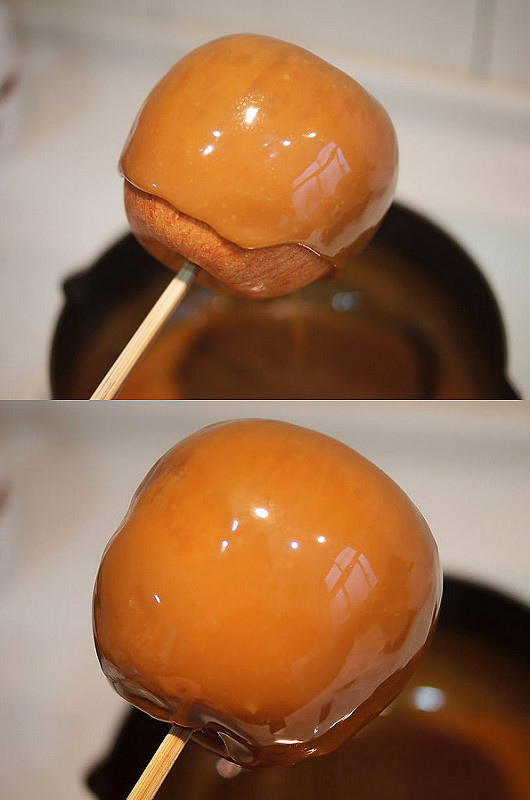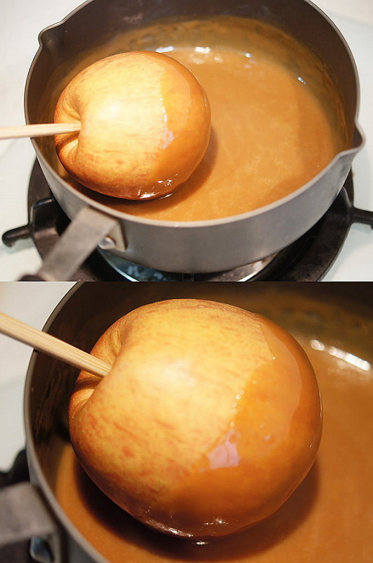 等到焦糖降溫了之後就不容易裹上蘋果了~