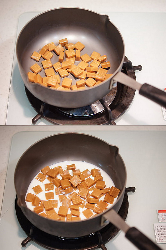 一般的焦糖要用砂糖、鹽跟奶油去熬~