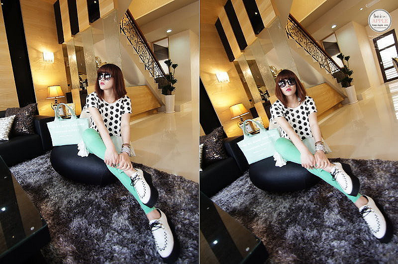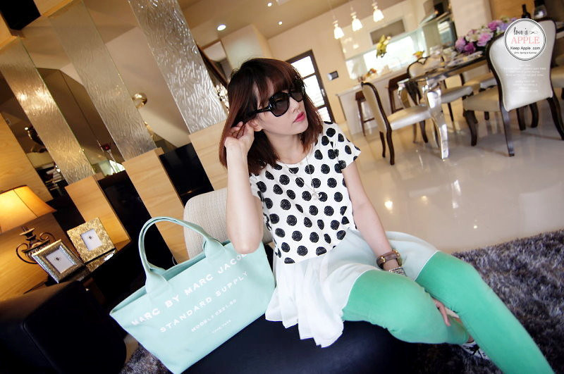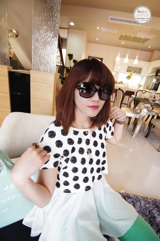 黑白點點上衣X波浪下擺內搭X亮彩色褲