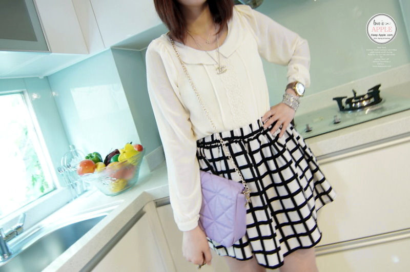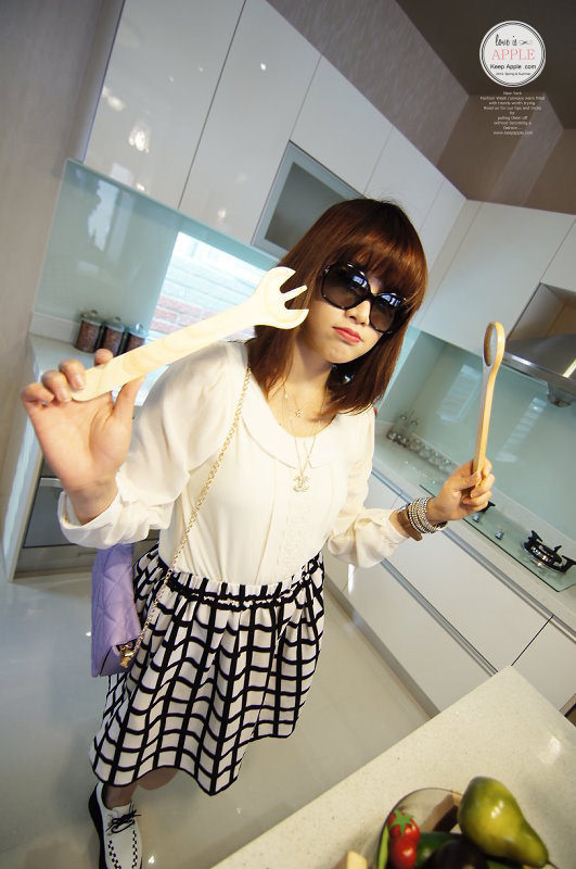 (襯衫:ZIZA 褲裙:PAZZO 包包:UME UNIQUE 項鍊:CHANEL )