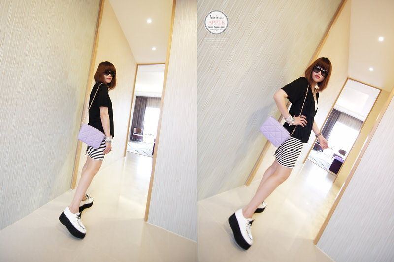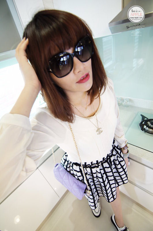 (上衣:NET 條文窄裙:PAZZO 包包:UME UNIQUE 項鍊:PUFII 墨鏡:TOM FORD )