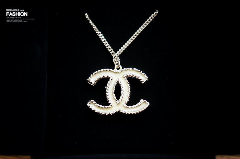 CHANEL 香奈兒 立體大雙C LOGO鑲水鑽背面雕刻項鍊 銀色