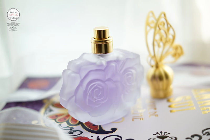 刻有雅緻玫瑰圖案的立體瓶身,配上明亮的薰衣草紫幻色澤。