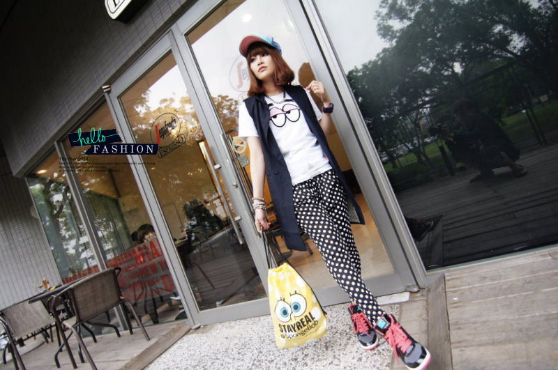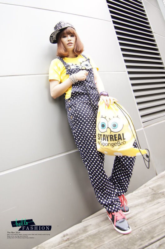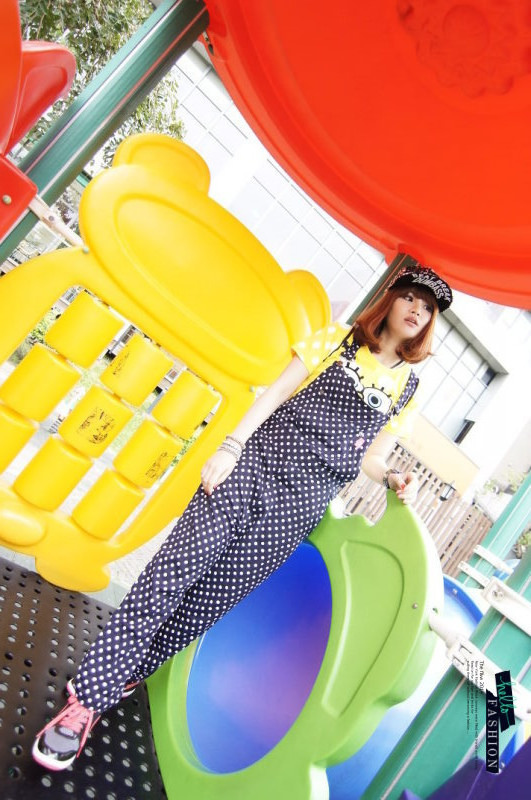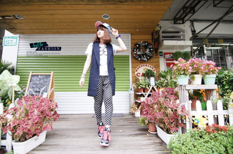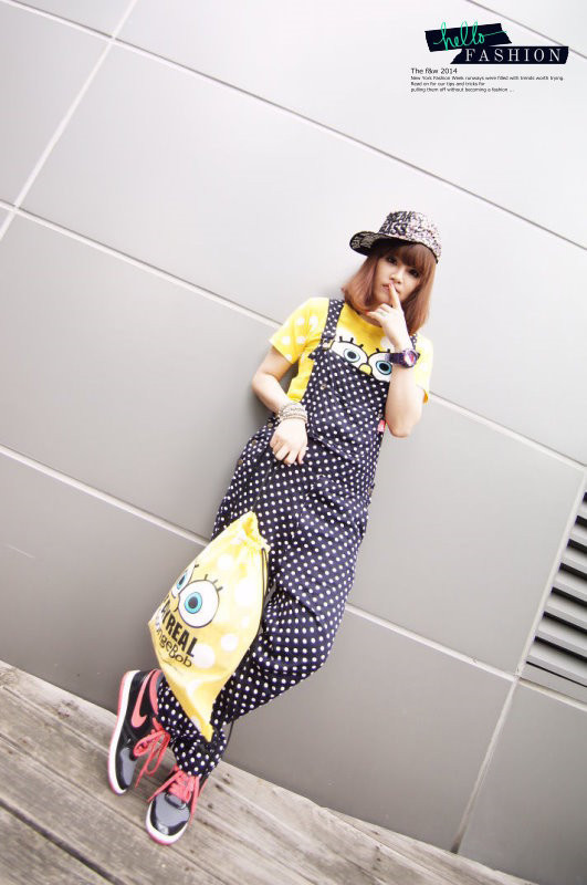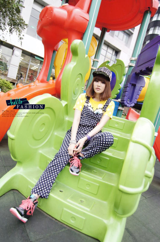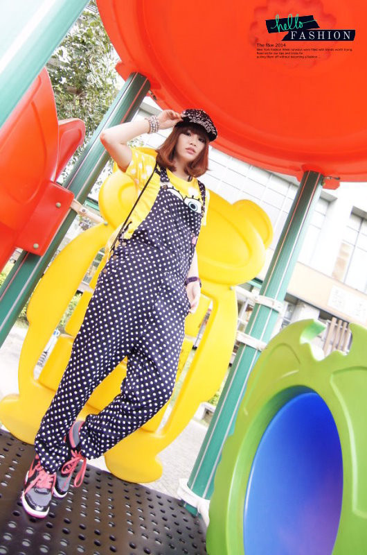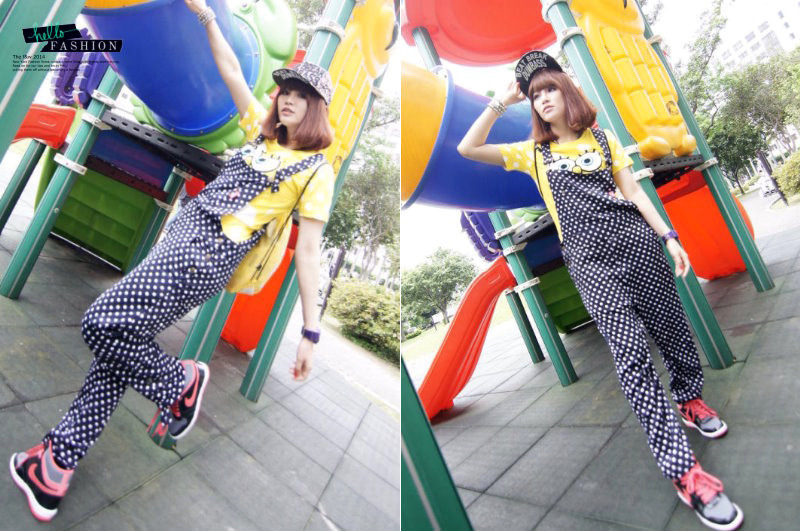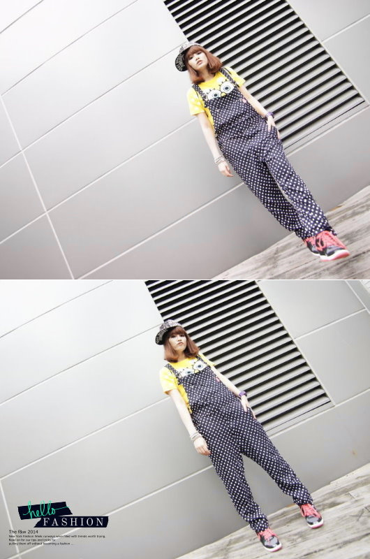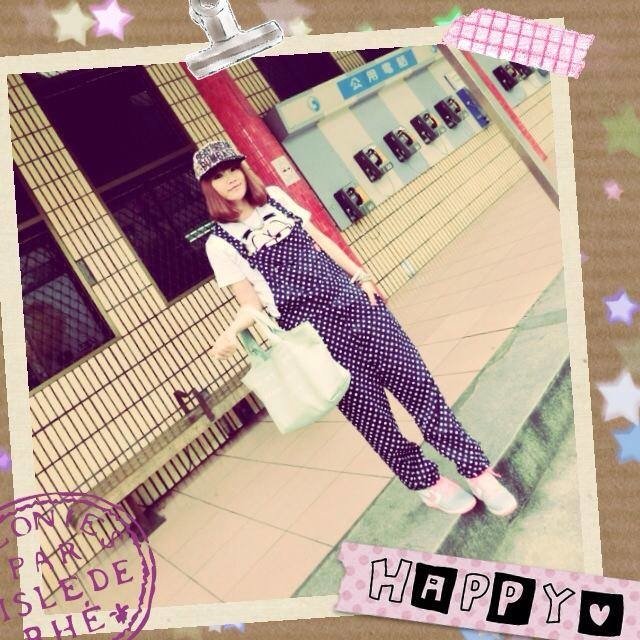 這件我搭配了之前和猴子去五分埔逛街買的日貨點點吊帶褲