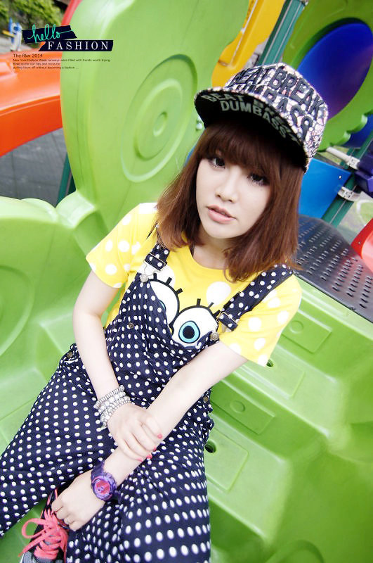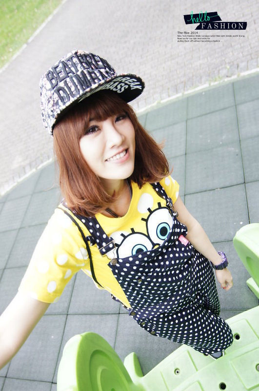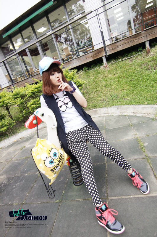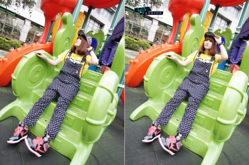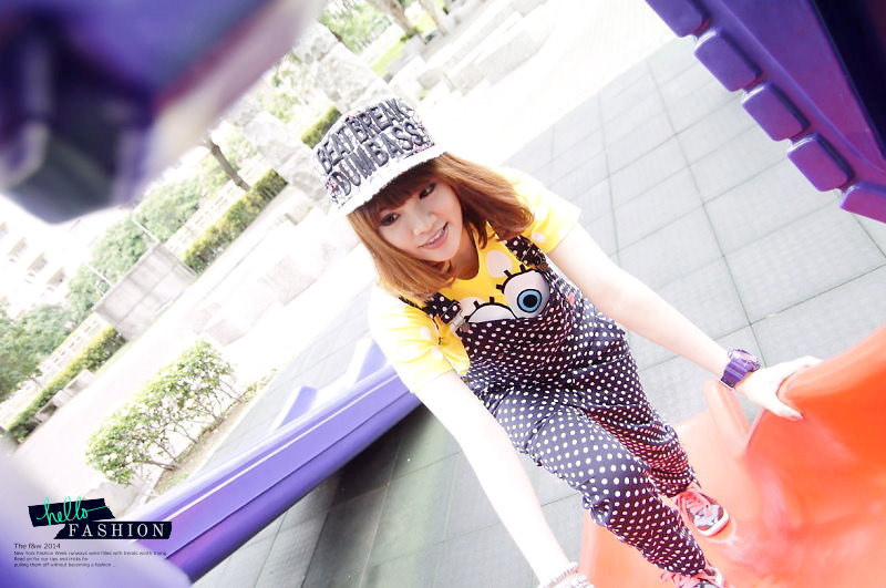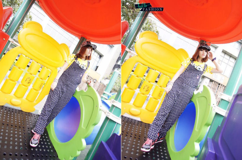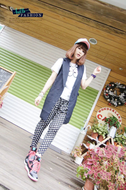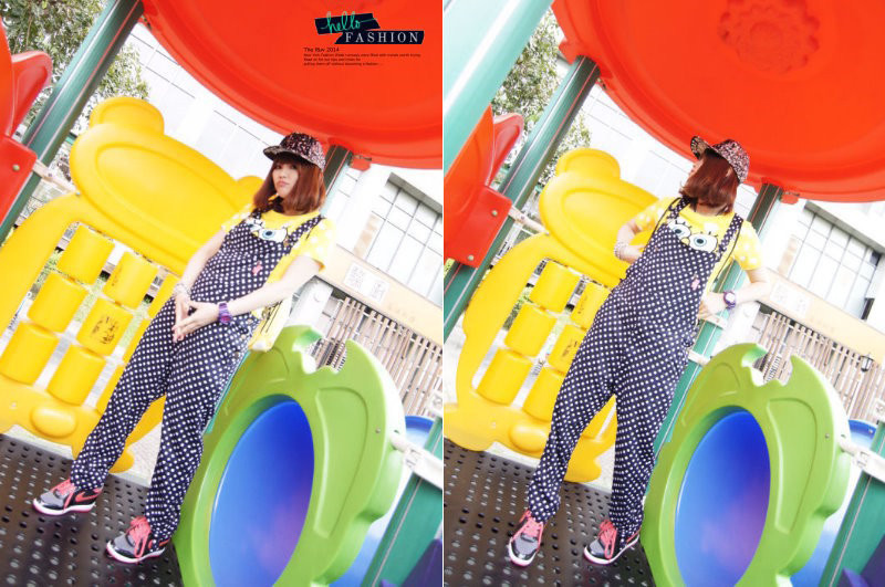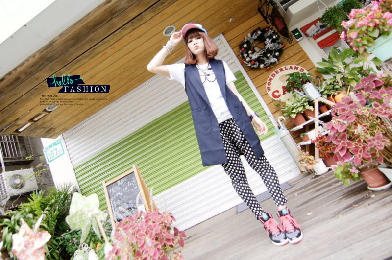 這件我搭配了之前和猴子去五分埔逛街買的日貨點點吊帶褲