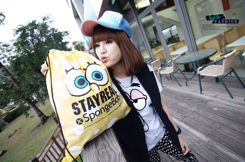 再來就是這個詢問度也很高的海綿寶寶束口揹袋啦