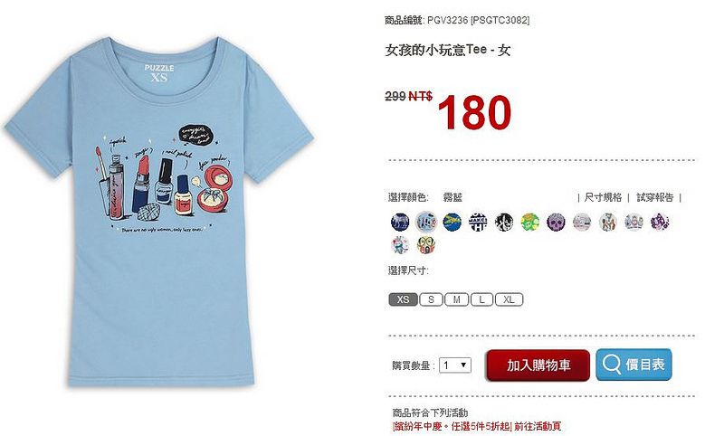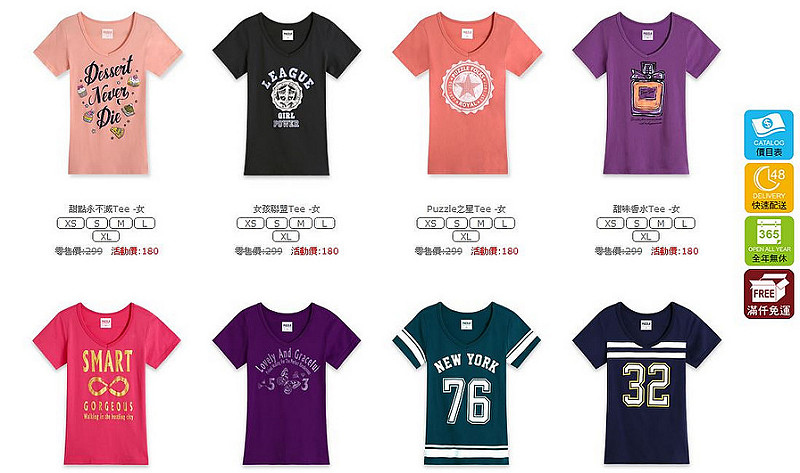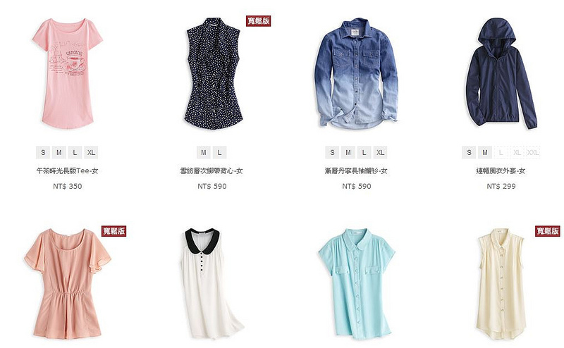 尺寸從XS到XL都有,所以可以很自由的選擇