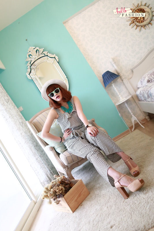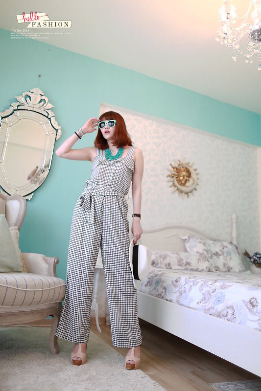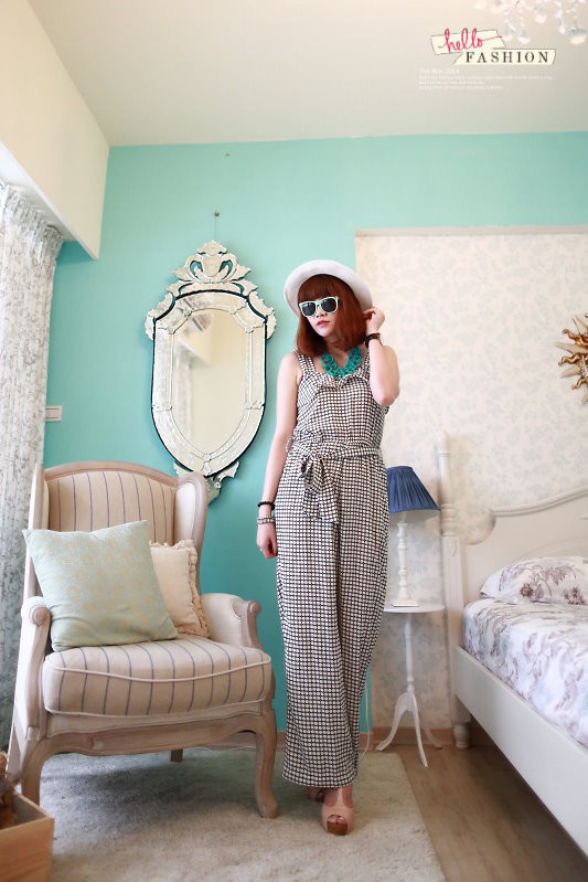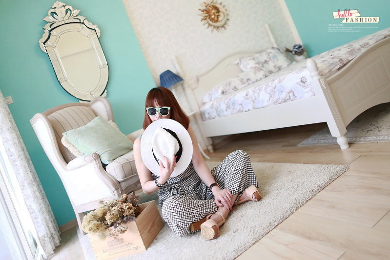 身上這件隨興自在滑布綁蝴蝶結連身褲是PATTIS家的新品