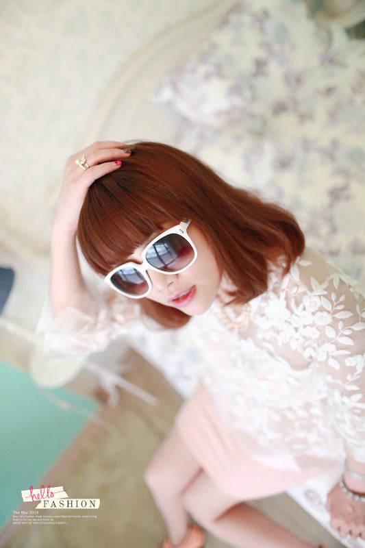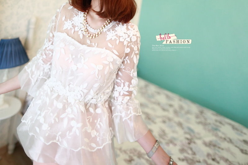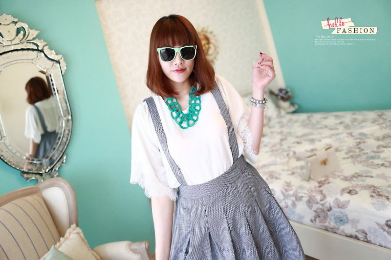 這套搭配了唯美綴睫毛蕾絲綁帶上衣