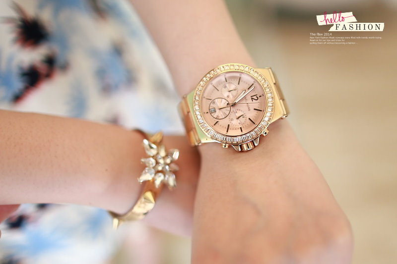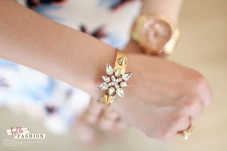 層次金色扣飾綴白色亮鑽裝飾再結合T型設計