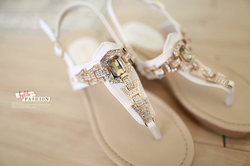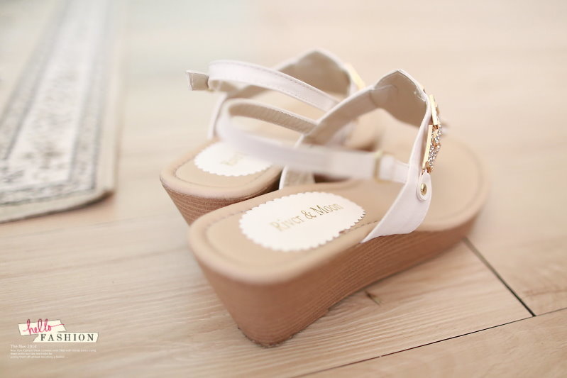 7.River&Moon台灣製金色扣鑽T字乳膠厚底夾腳涼鞋-名媛白