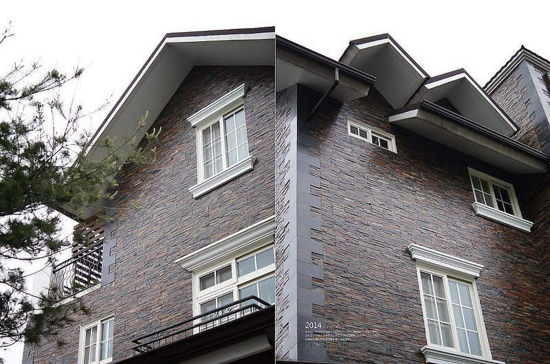 石材的外牆面佐以大量木質於室內空間中