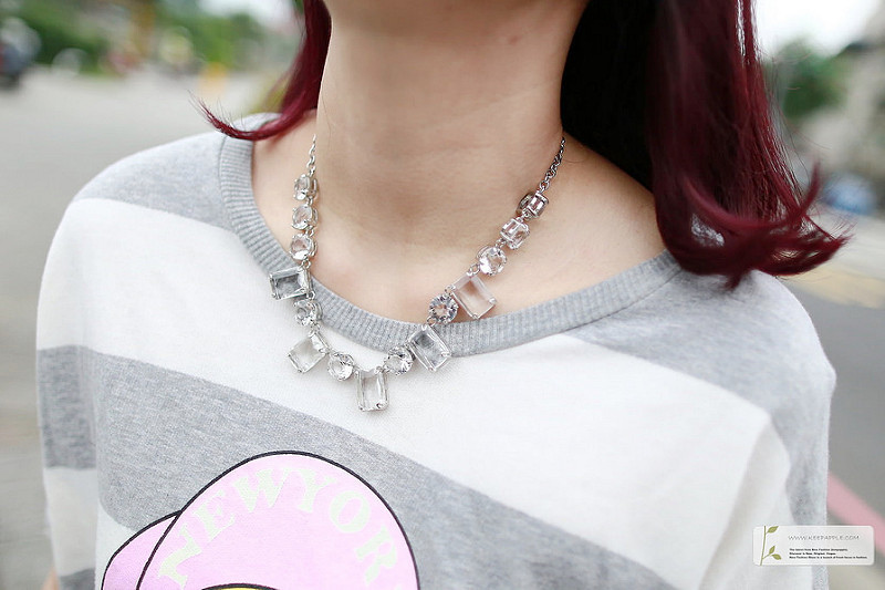 飾品就用比較精緻感的水晶項鍊來平衡一下