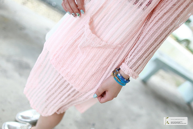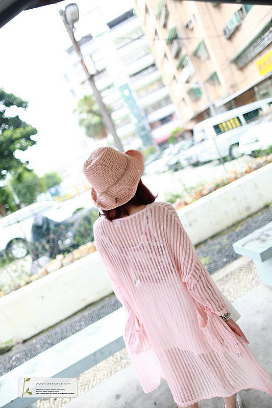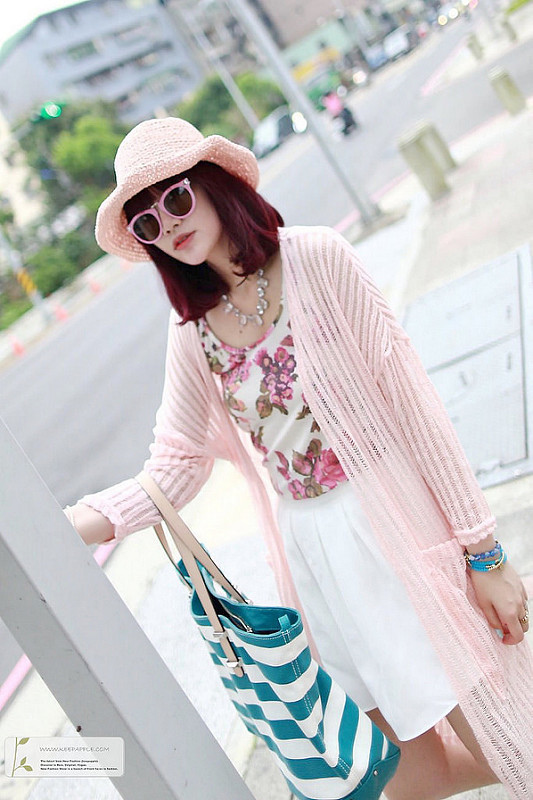 透氣款粉色系網狀口袋設計垂墜長罩衫