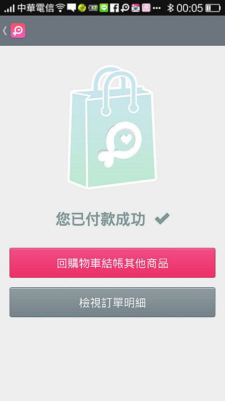 然後會收到付款成功的訊息