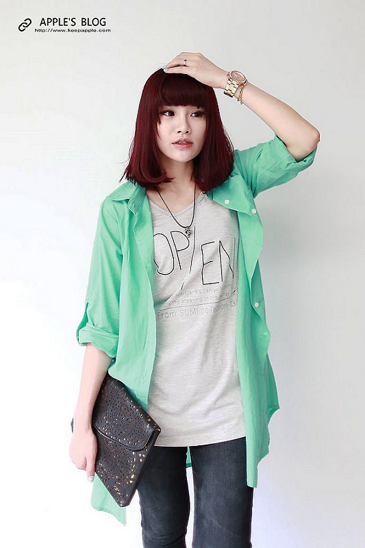 搭配上俐落的長版襯衫
