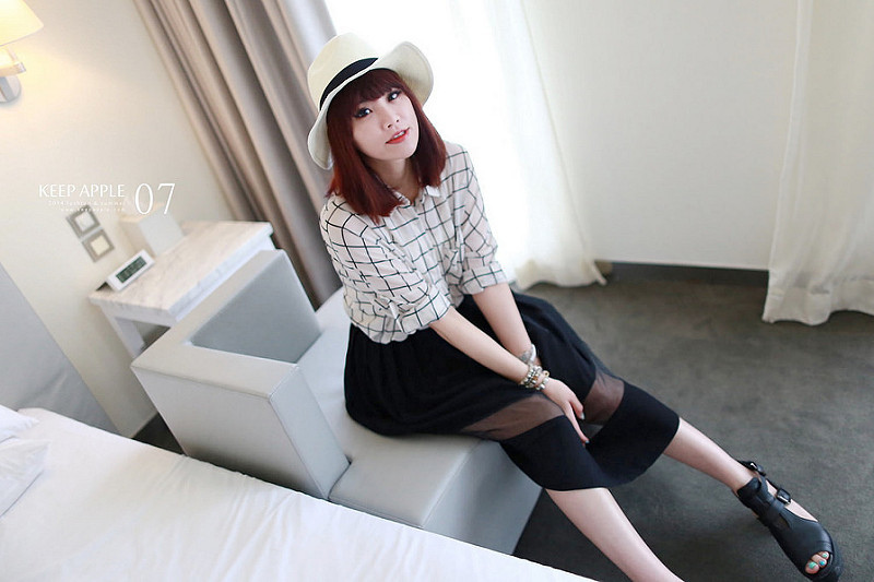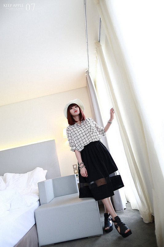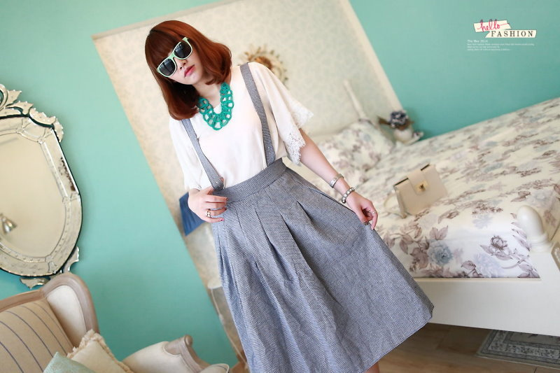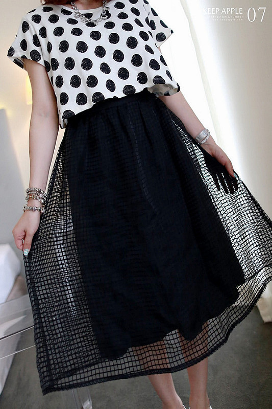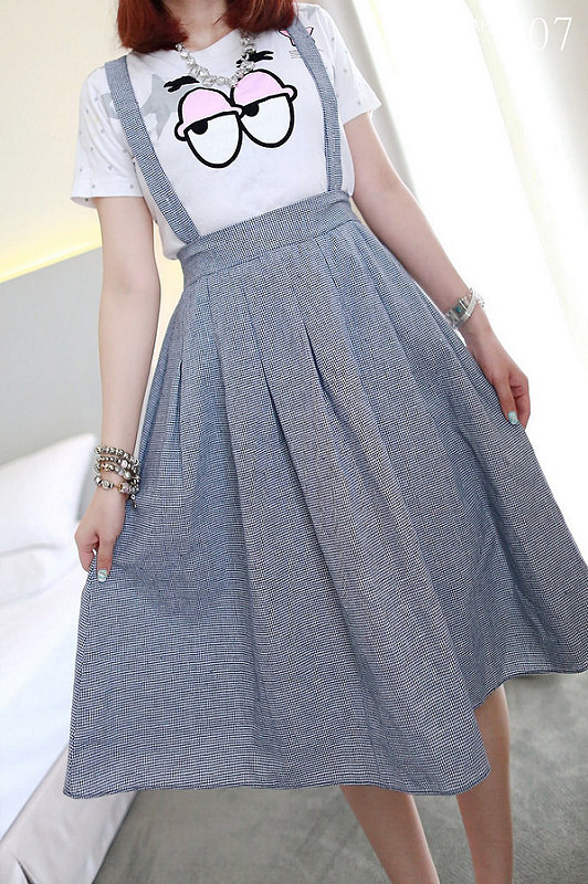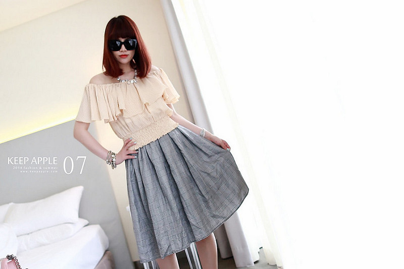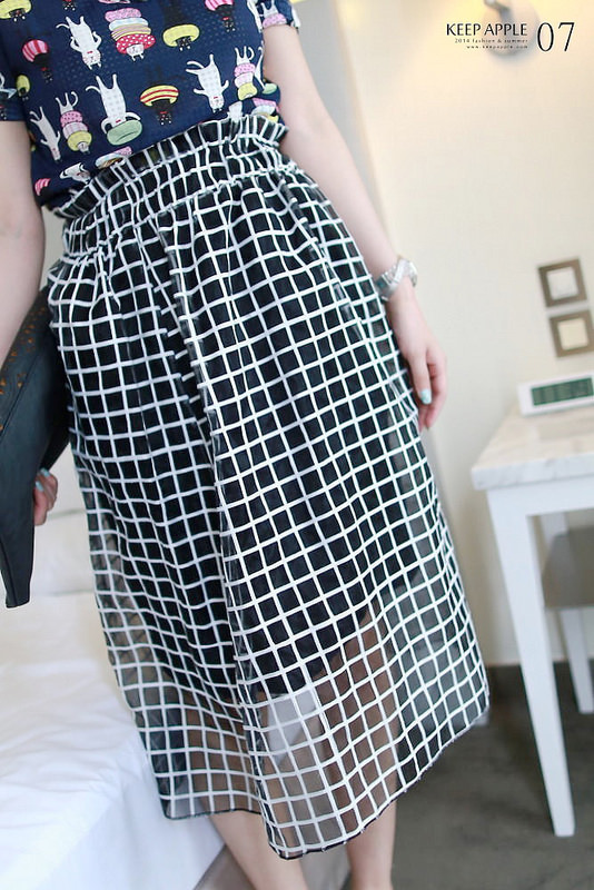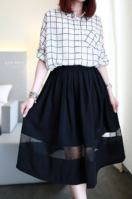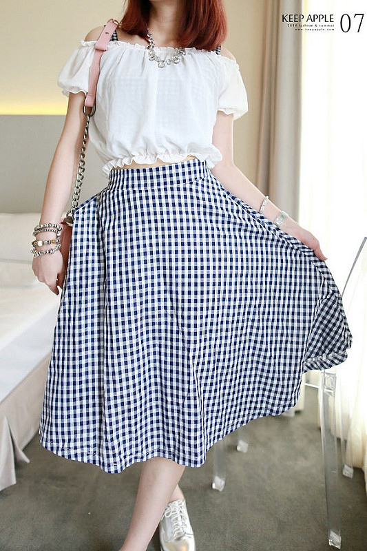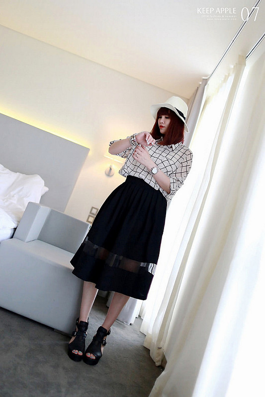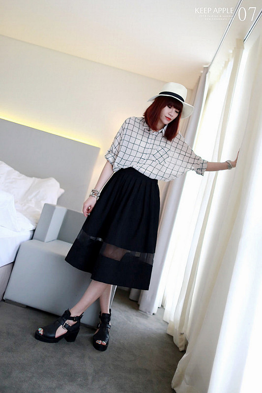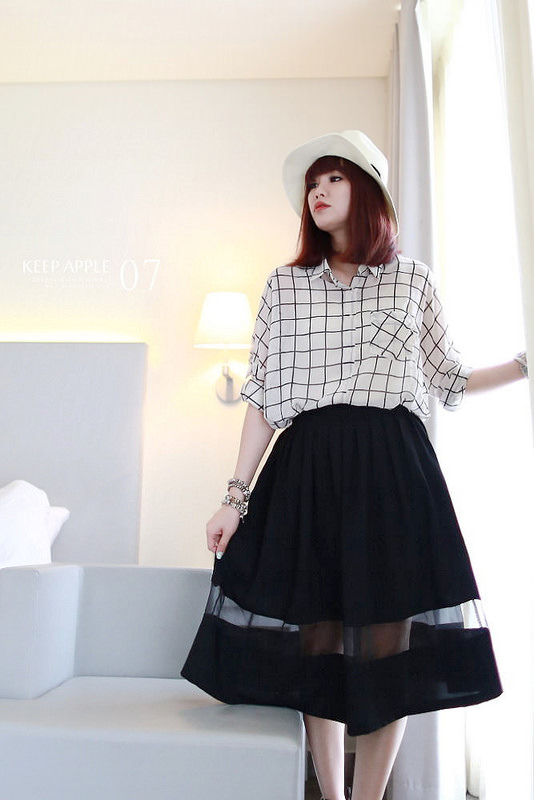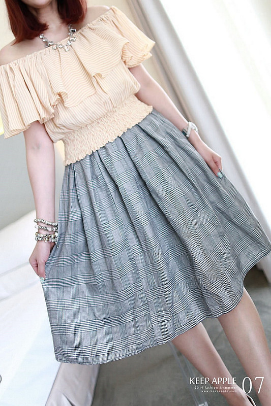格紋上衣罩衫混搭了格紋的及膝傘擺裙