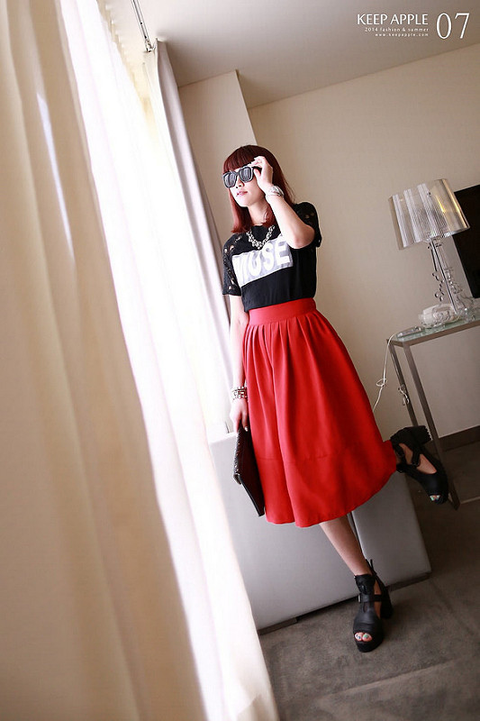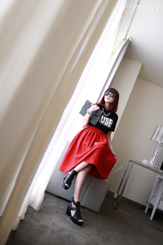 簡單搭了字母上衣,黑X紅很ROCK我愛