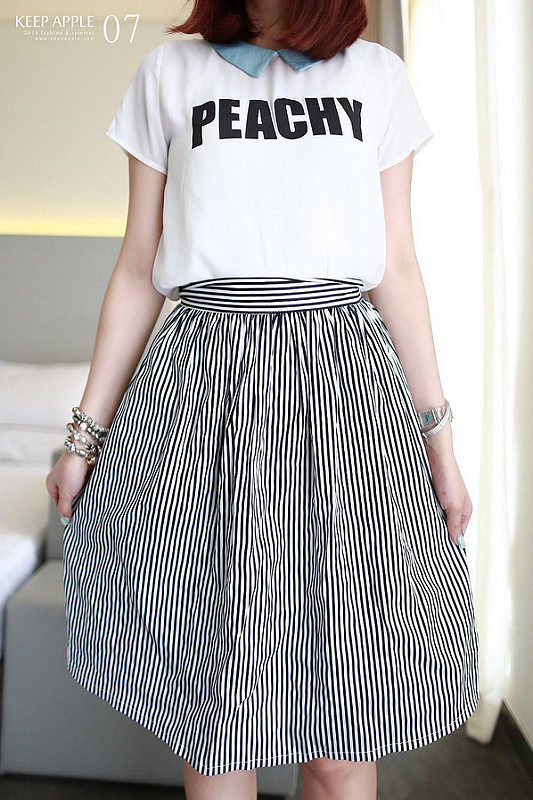 條紋款式很休閒跟清爽,搭配字母上衣非常搭