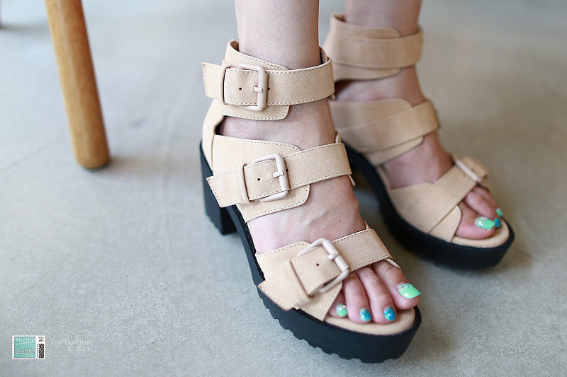 也是最近剛買的時髦韓系-多重釦帶粗跟厚底涼鞋 杏