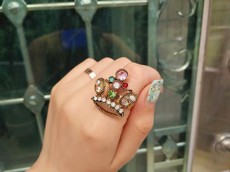 Crown Ring With Colorful Rhinestone
