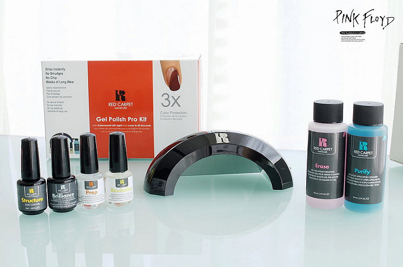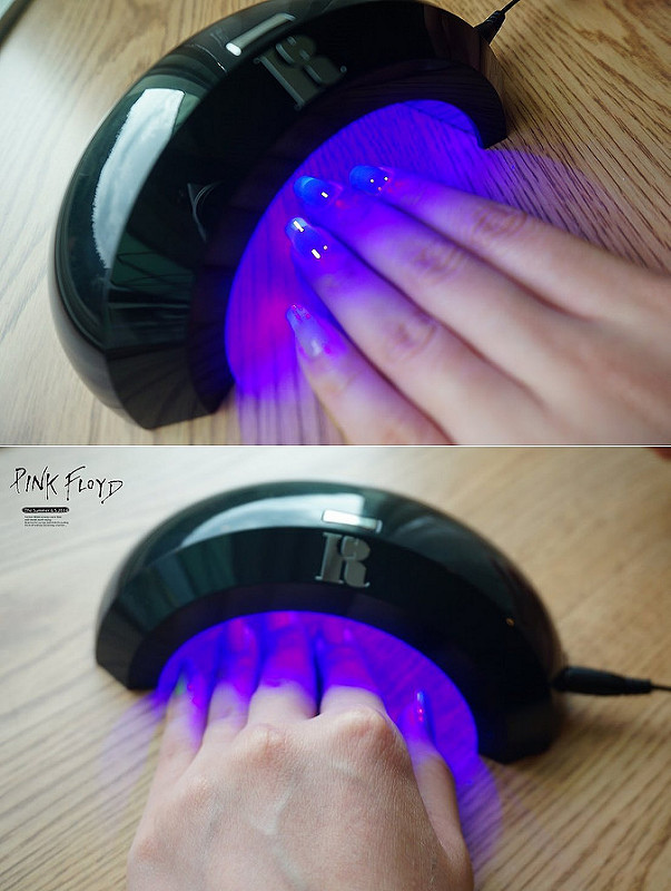 以及藍色的清潔液、粉色的卸甲水和最主要的光療照光機器。