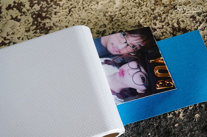 把相紙包裡附贈的藍色條碼紙拿來和相紙一起放進