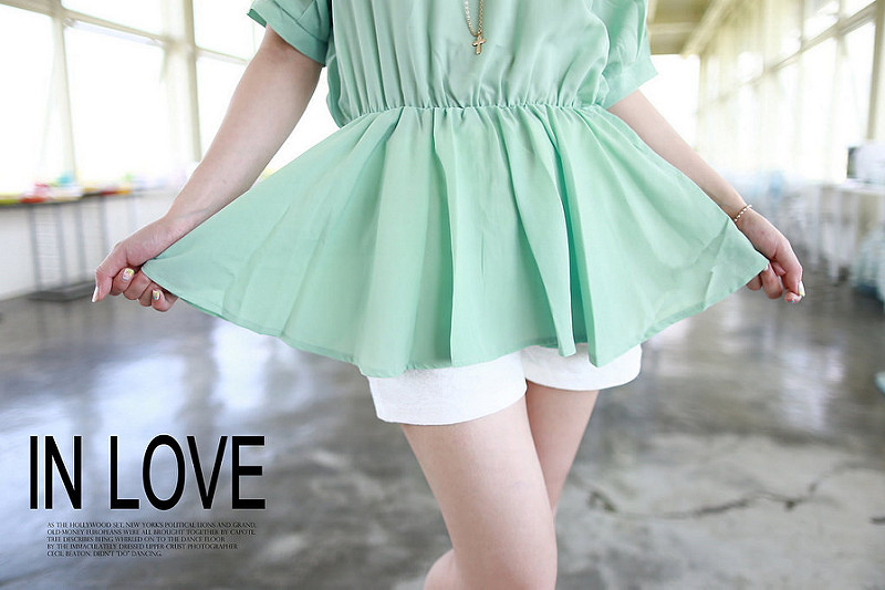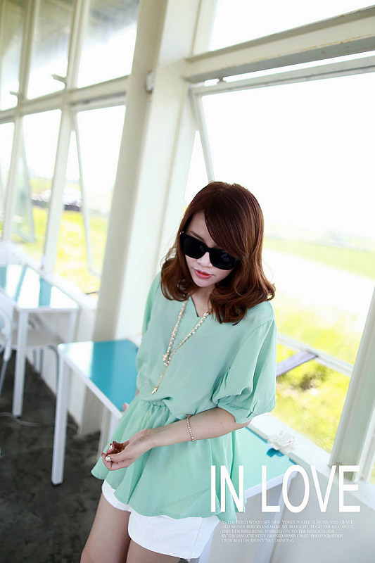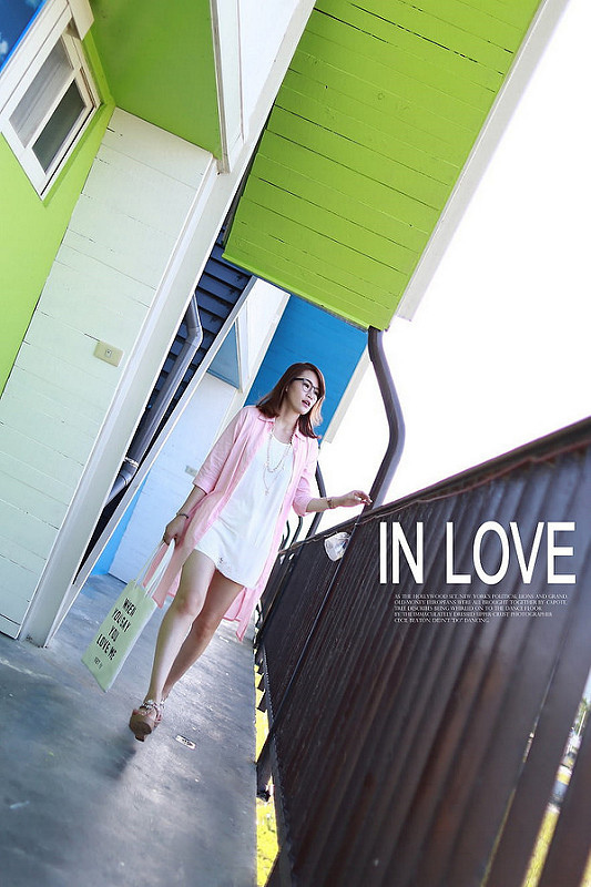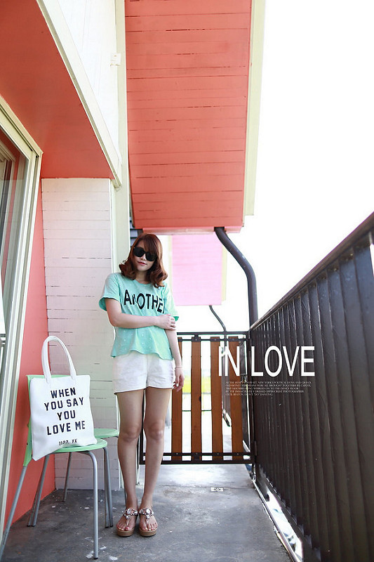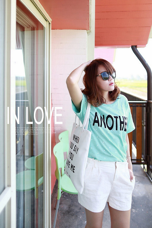 亮色系上衣加上白色短褲