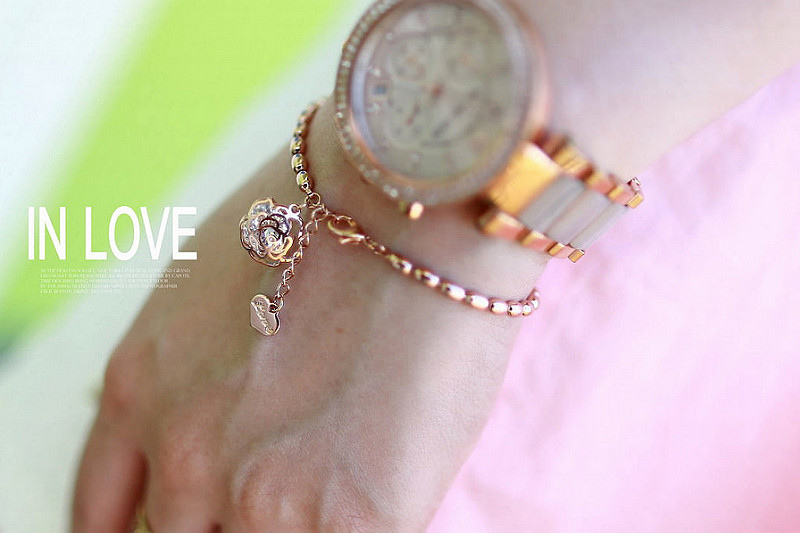 浪漫的薔薇圖案搭配水鑽,細緻又有氣質