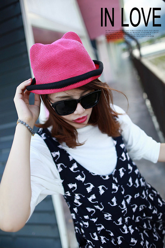 可愛的桃紅色動物耳朵帽子