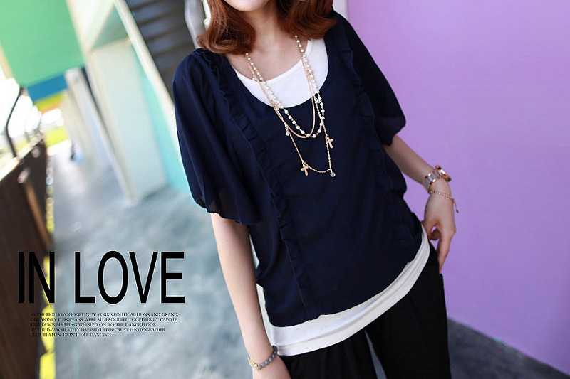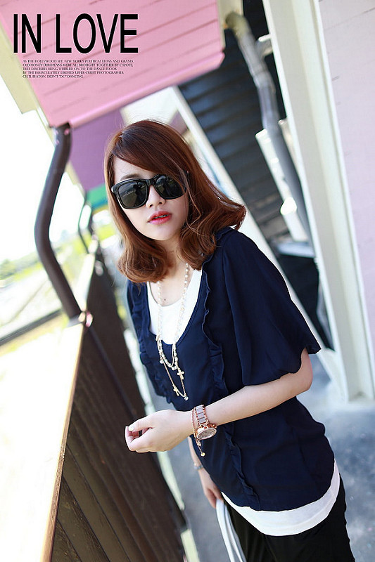 雪紡荷葉邊大U領罩衫+白色的長版背心