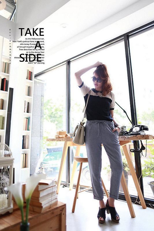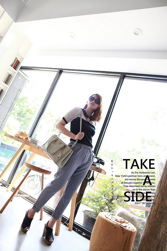 我覺得搭白色的窄管長褲也會很好看呢~又清爽