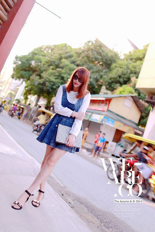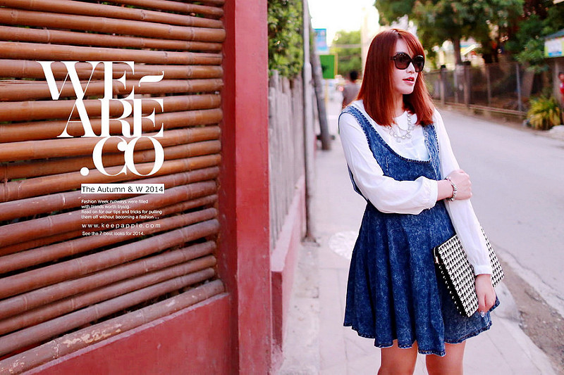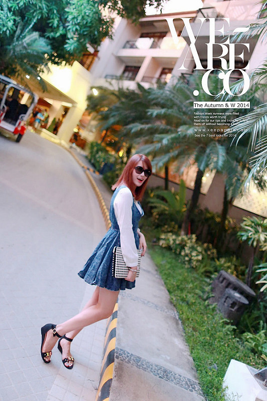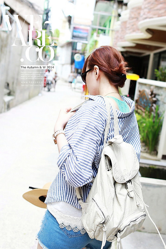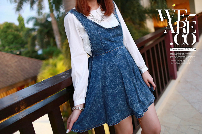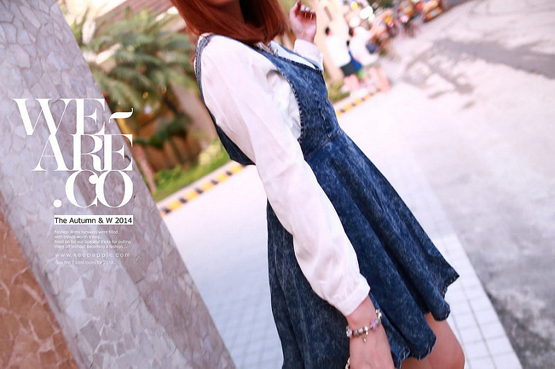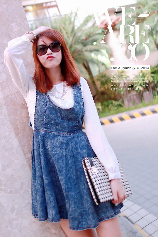 身上的襯衫配上吊帶裙的搭配是我自己搭配的