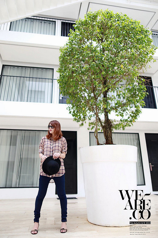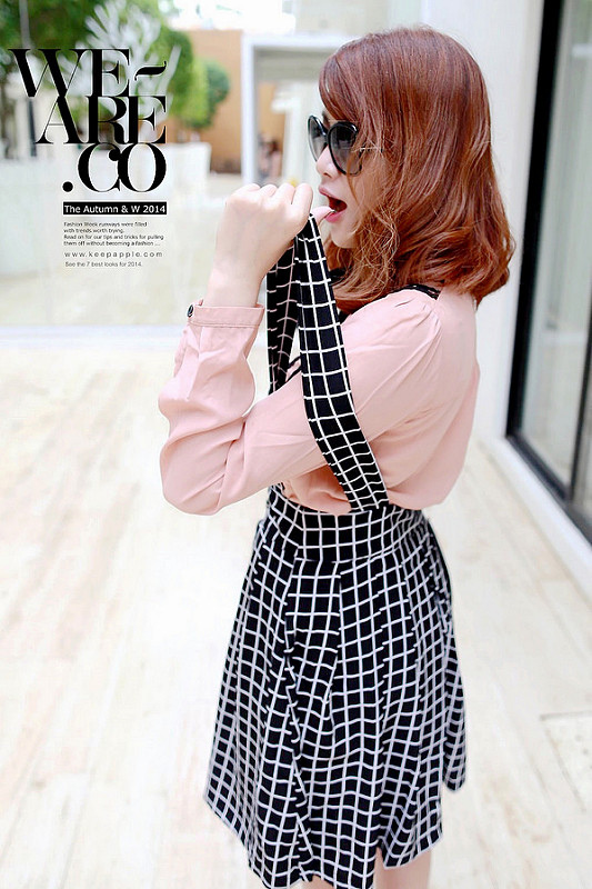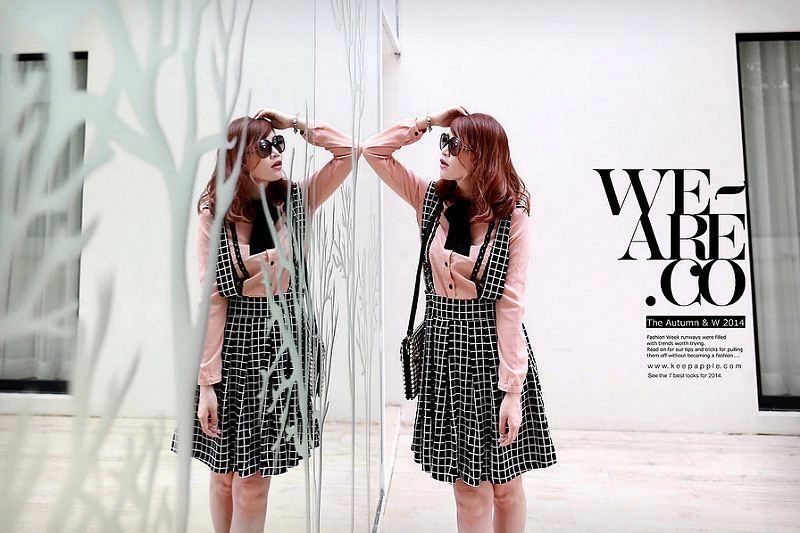 配上格紋吊帶裙有種瞬間小10歲的感覺...