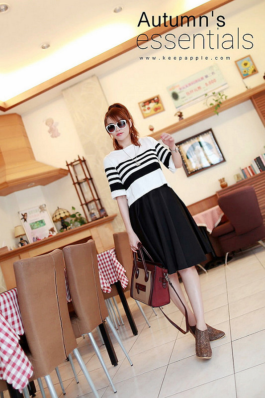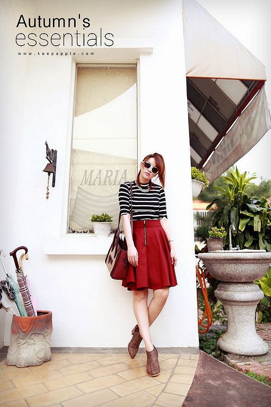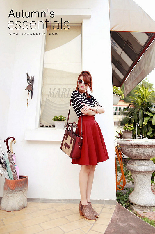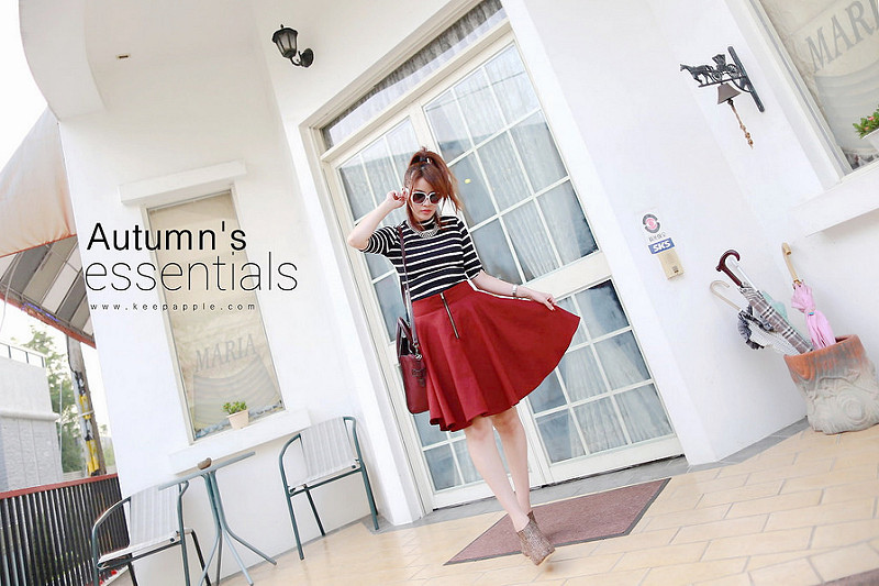 高腰傘擺群跟條紋上衣都是最近才入手的日貨