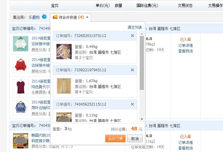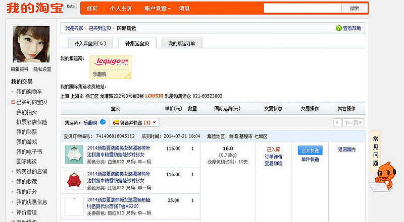 最上頭有個待入庫寶貝\待集運寶貝\我的集運訂單