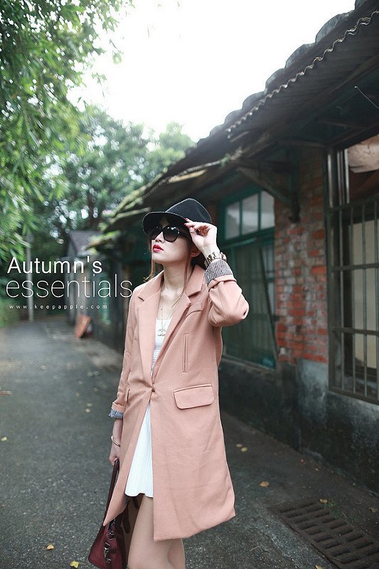 外套寬鬆的話,露出一些腿部肌膚剛好可以平衡一下