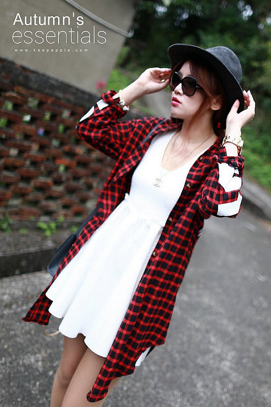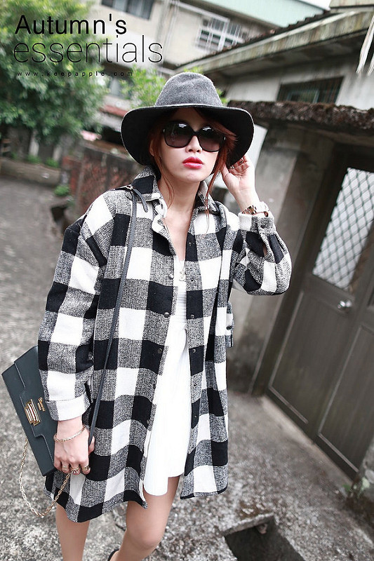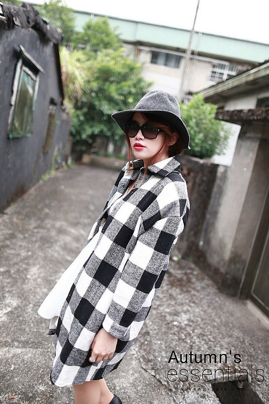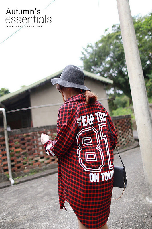 9.超長板背後數字81印花格紋捲袖式襯衫長外套