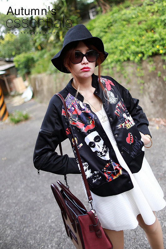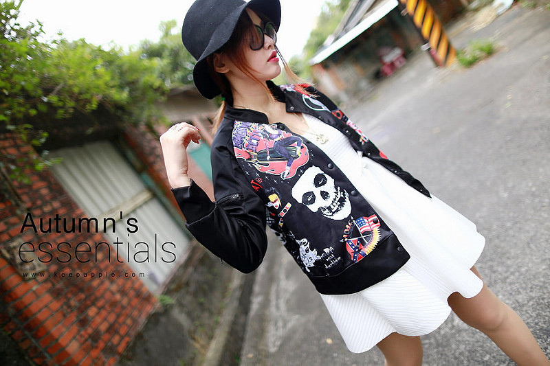 8.日系原宿風ZIPPER搖滾漫畫塗鴉印花拉鍊短版外套