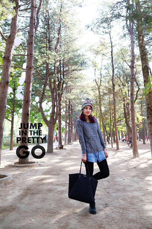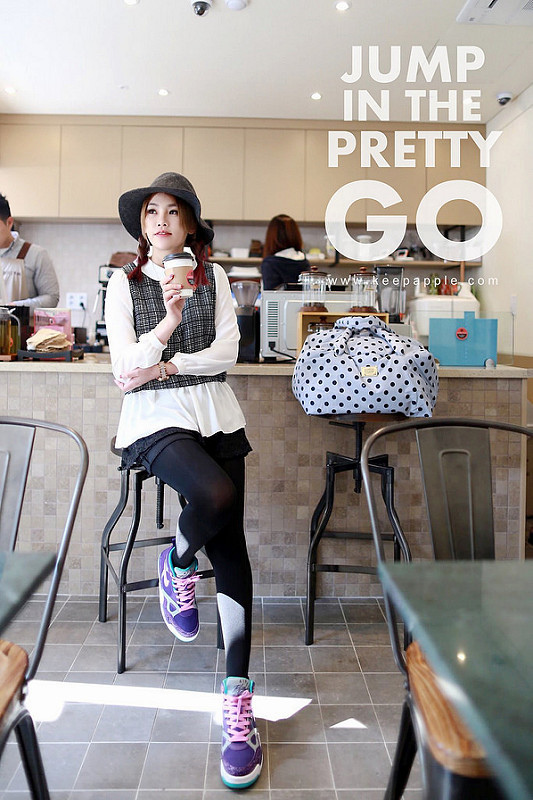 身上的外套和襯衫上衣是梨大購入,球鞋也是戰利品