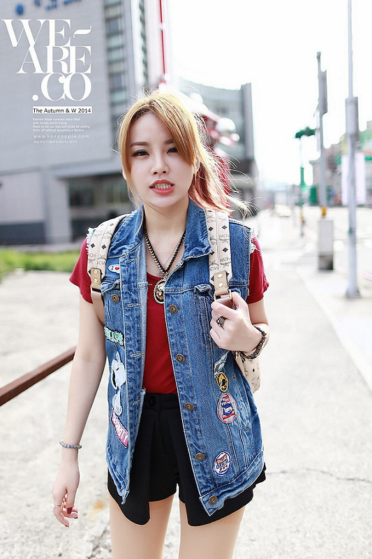 牛仔塗鴉長版背心是今年春天跟SHARON買的